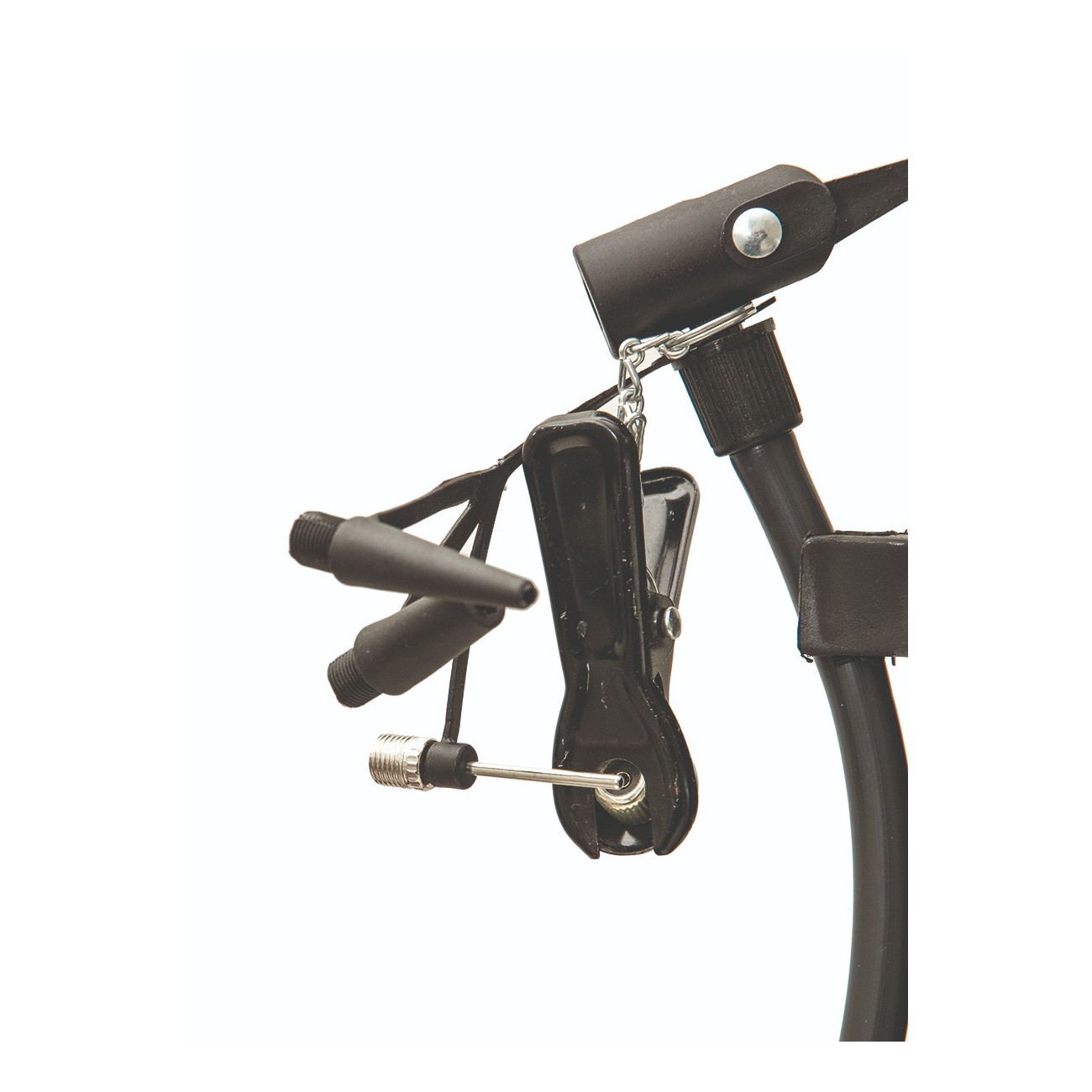 It includes a balloon nozzle and a standard needle, making it a versatile solution for various inflation needs. Additionally, it features a set of needles and adapters stored inside the handle, ensuring convenience and preventing loss of accessories.
