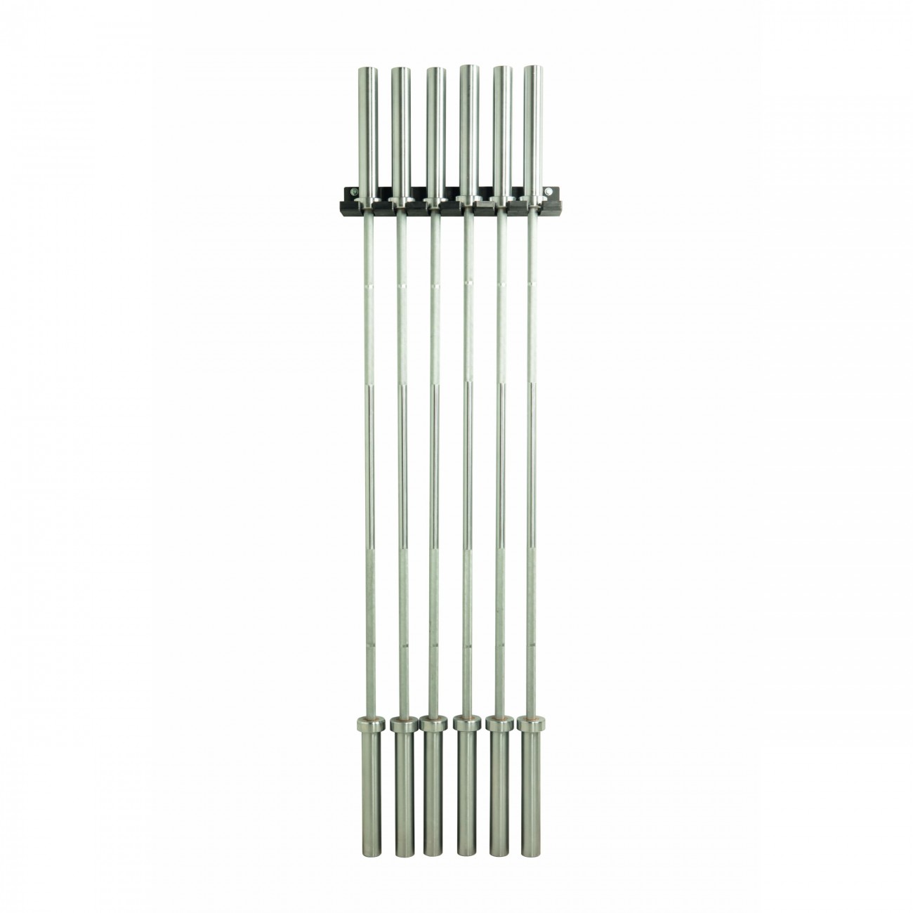 Wall mount for stainless steel Olympic bars. Suitable for six Olympic bars. Comfort, safety and great resistance. Easy to place and assemble.