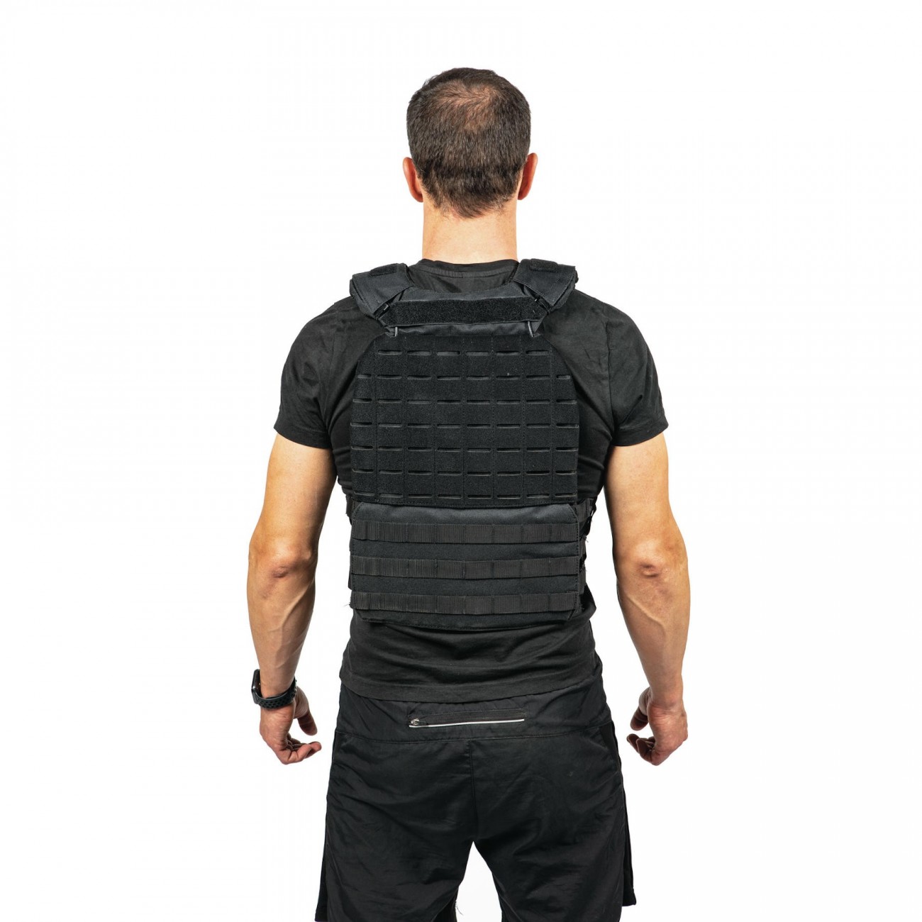 Tactic functional vest, specially designed for a perfect body adaptation, no hindering movements. Includes four metallic shield, that get in on a safety way into the vest, and makes possible adapt the weigh to every person. Fasten with safety straps on a high quality velcro, that gives an easy and correct body adaptation, and shoulder pads to be more comfortable.