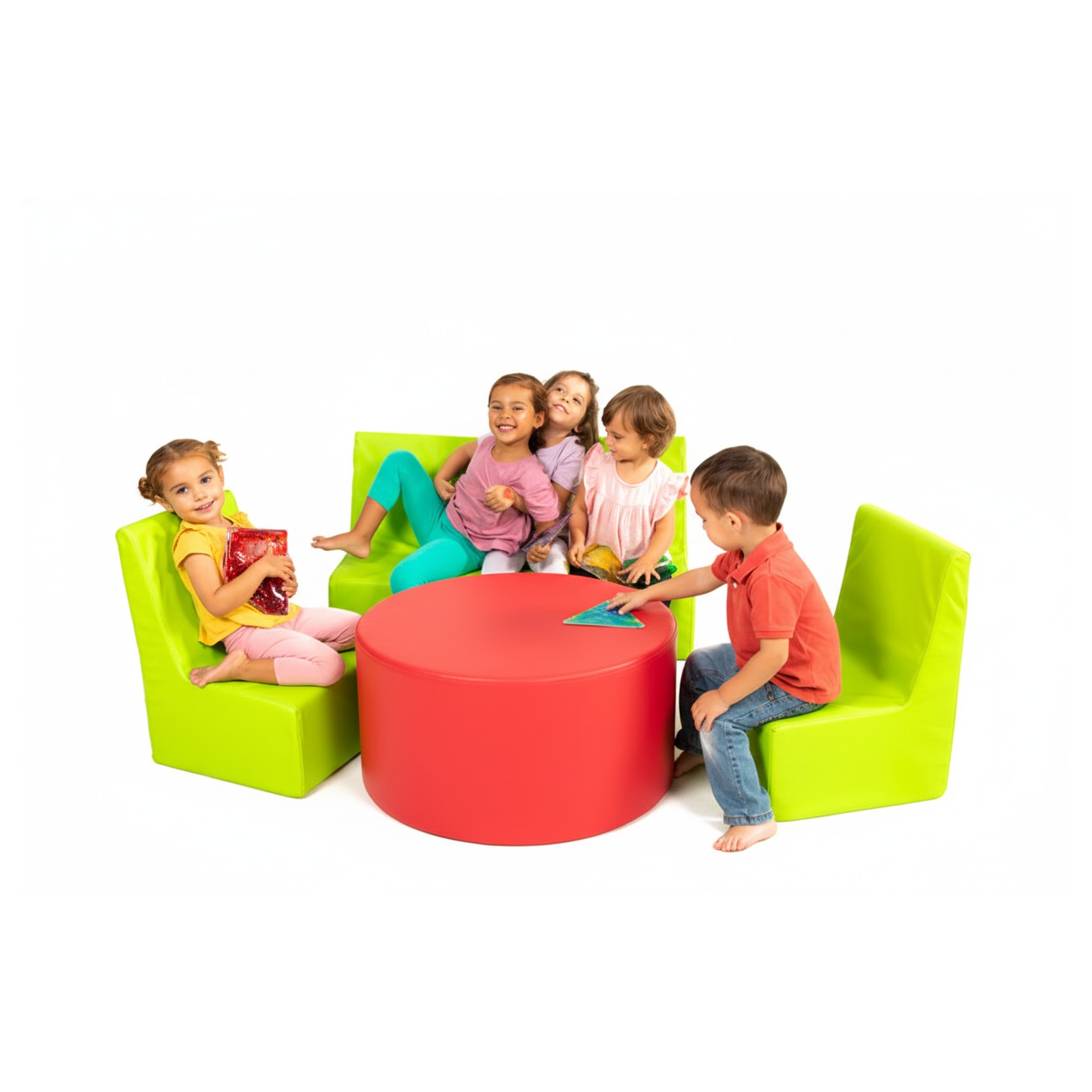 Made with a 25 kg/m³ polyurethane foam interior, the furniture offers long-lasting comfort and maintains its shape even under daily use. The high-resistance waterproof synthetic leather exterior ensures easy cleaning and outstanding durability, making it perfect for intensive use in schools or early-childhood settings.