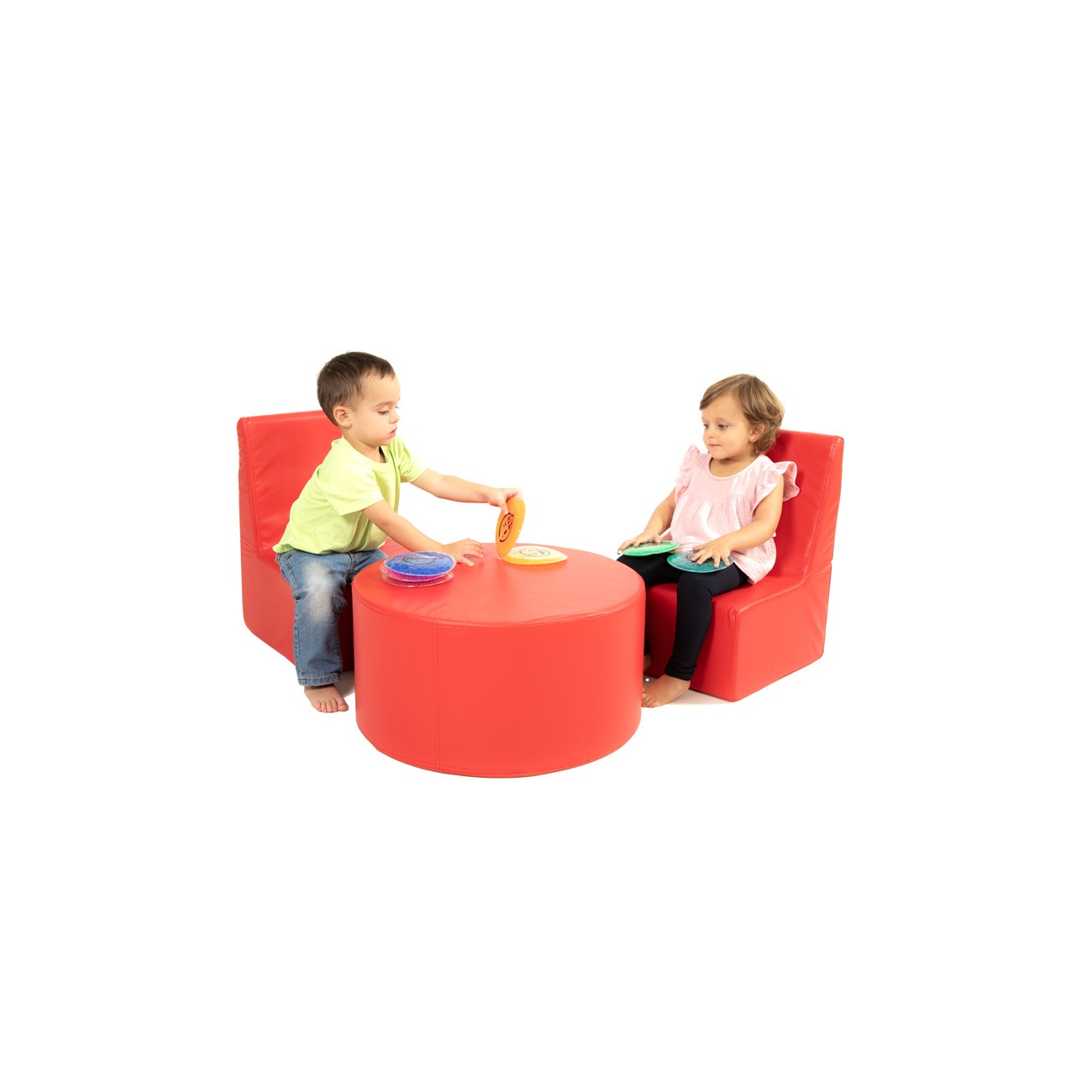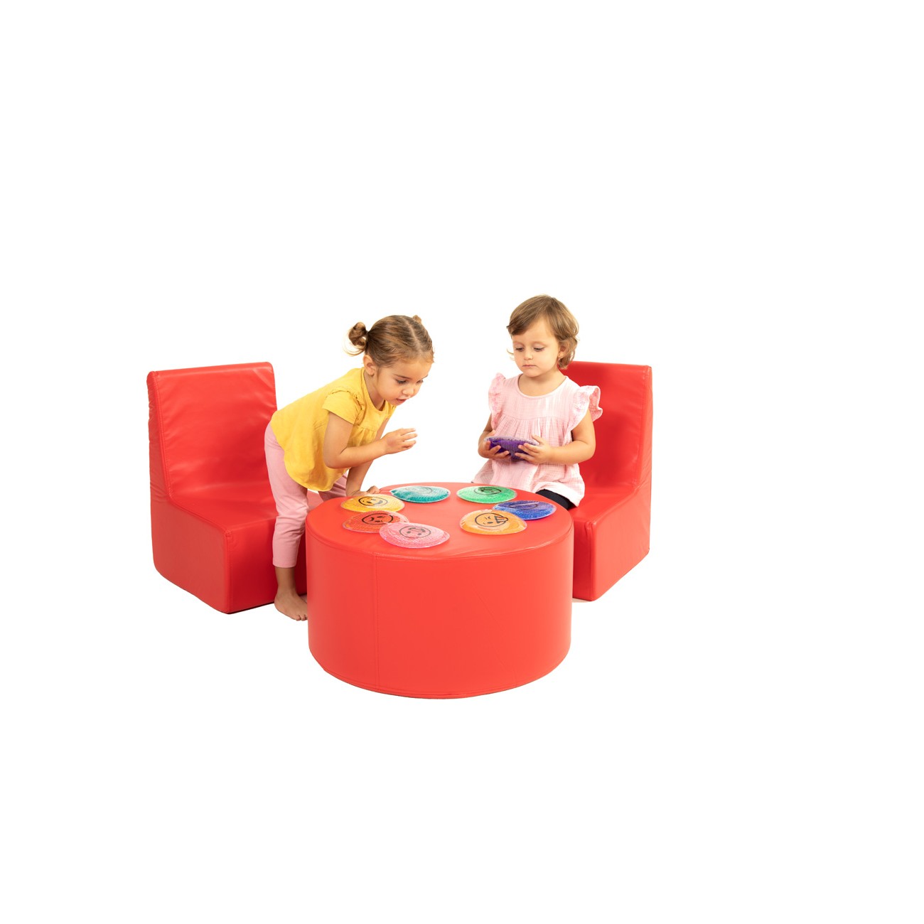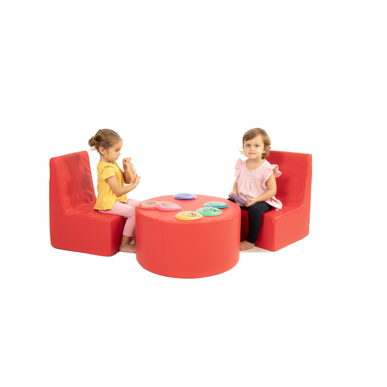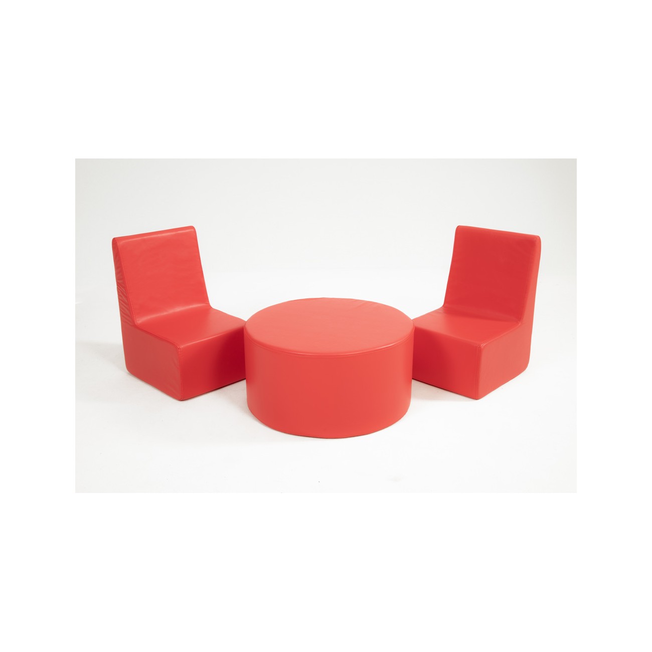 Children’s Corner Set: 2 Chairs and Cylindrical Table in Synthetic Leather