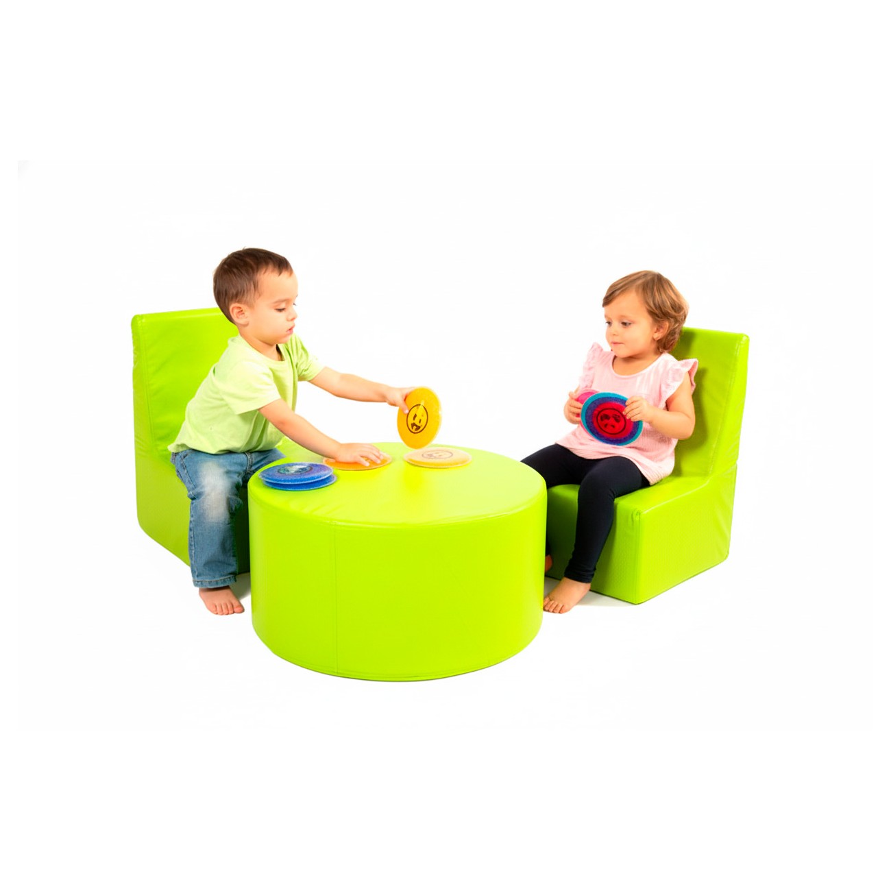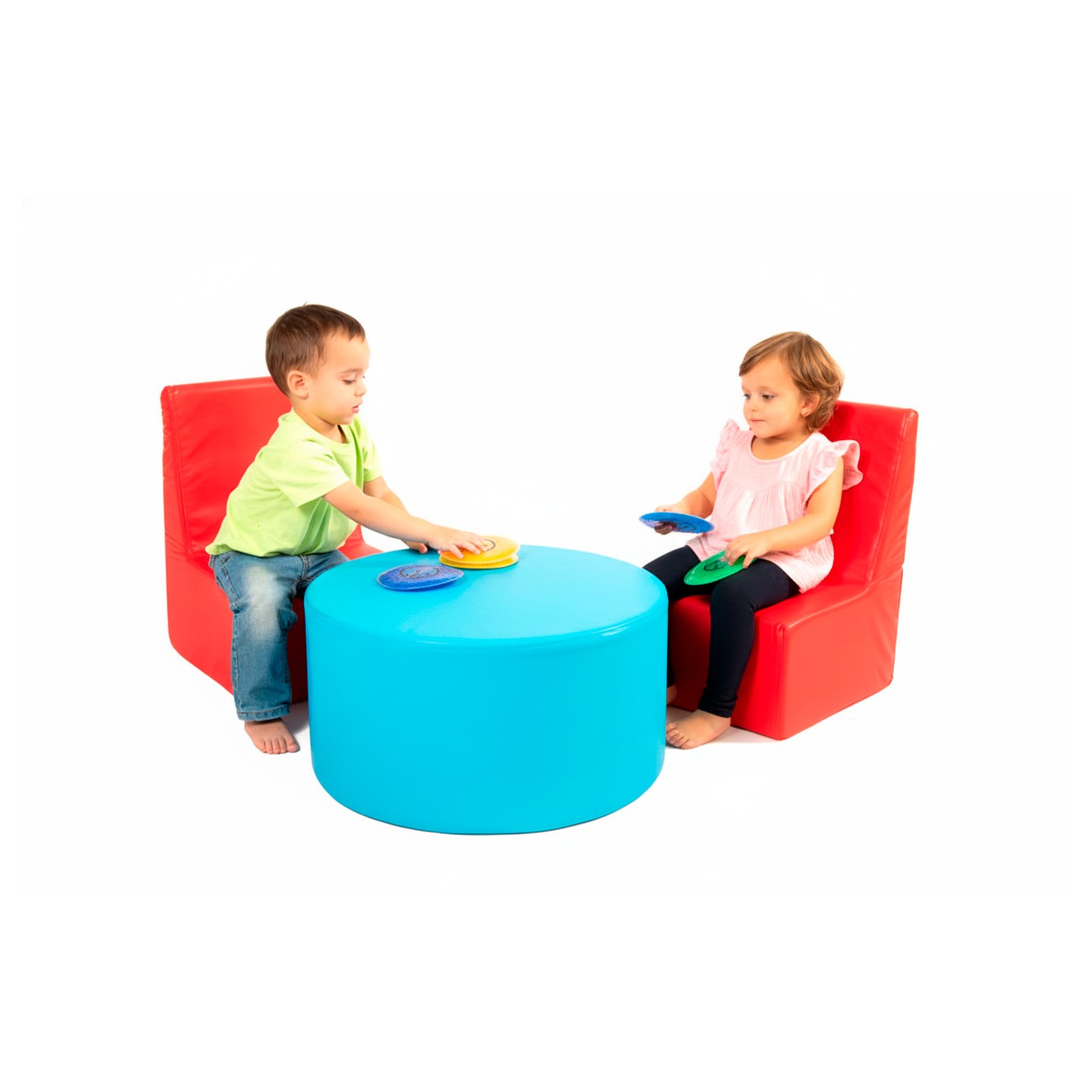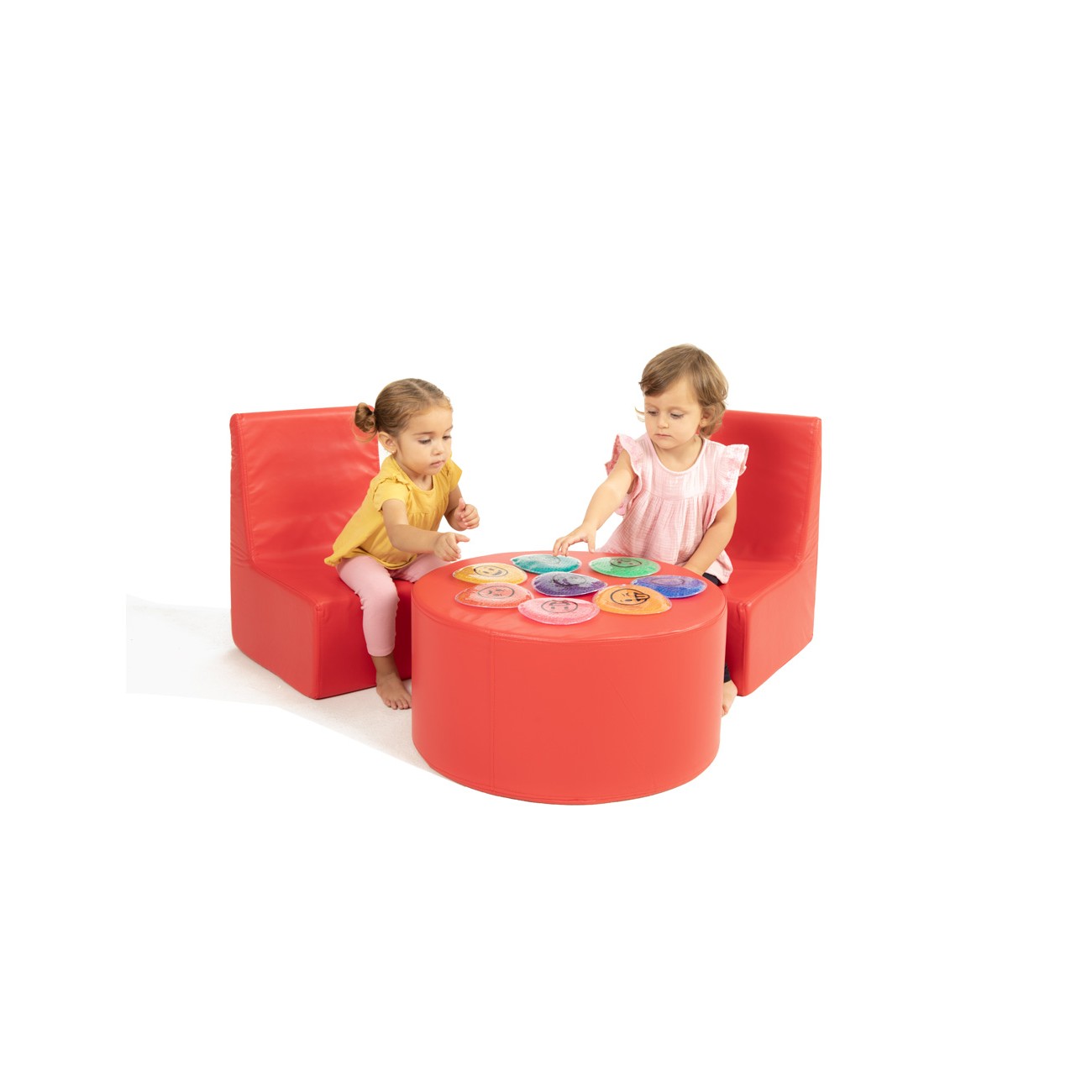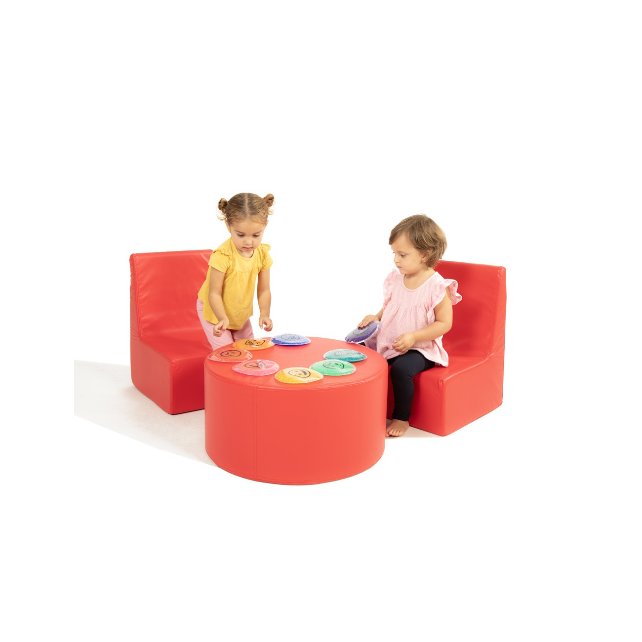 Children’s Corner Set: 2 Chairs and Cylindrical Table in Synthetic Leather