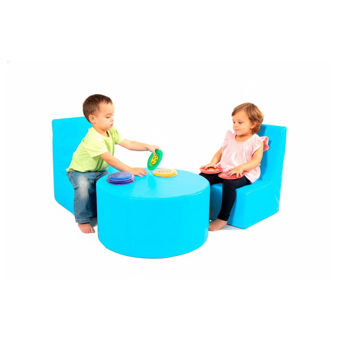 The Amaya Sport children’s corner set with 2 chairs and a cylindrical table is designed to create comfortable, safe and functional spaces in educational and play environments.