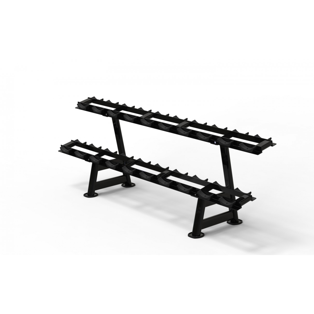 Capacity for 10 pairs. Structure designed for the storage and organization of classic round dumbbells.