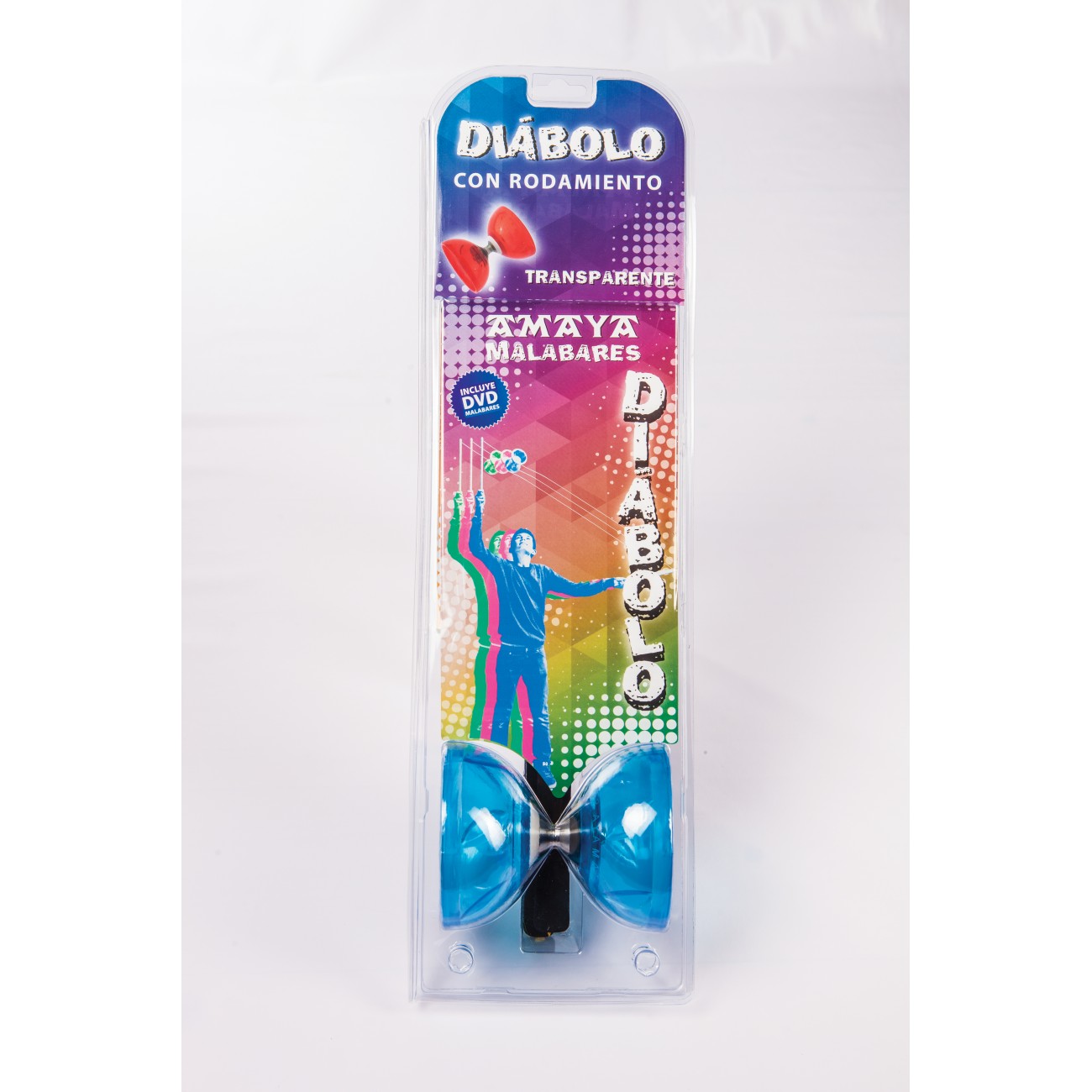 This complete set includes a 100 mm diameter transparent diabolo, durable fiberglass shafts with string, and a DVD with instructional content, ideal for progressively learning how to juggling.