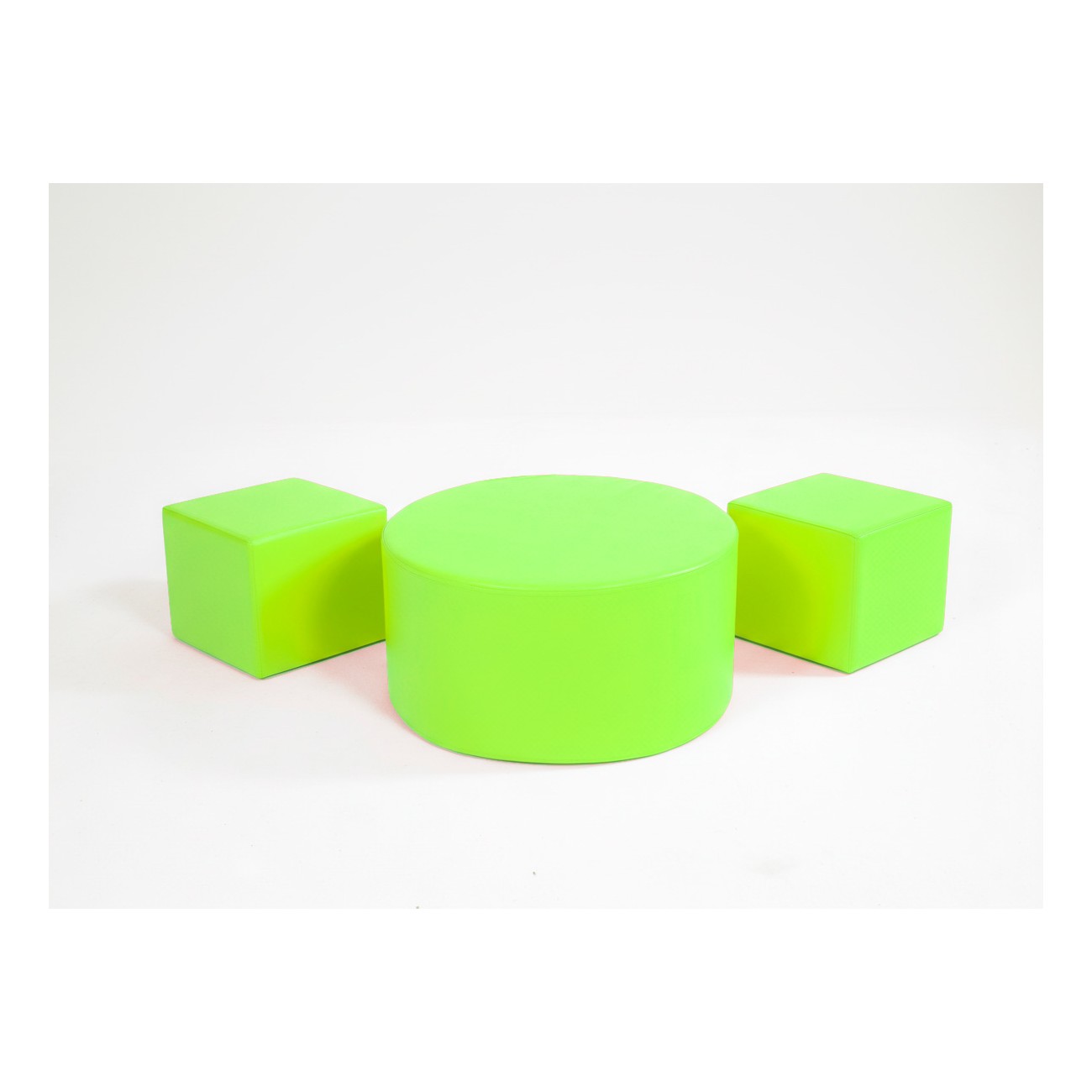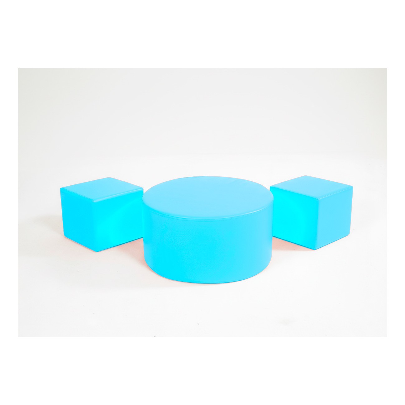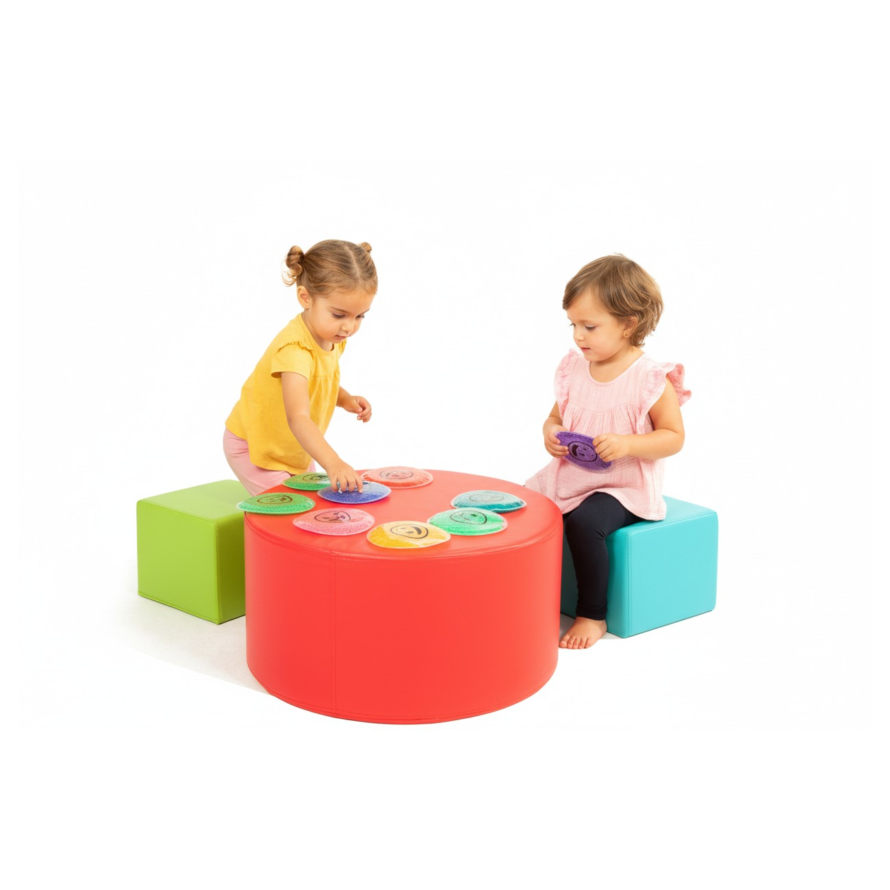 The round foam table completes the set, providing a safe surface for activities such as playing, crafts, reading, or snack time. Its soft design minimizes impact risks, while its lightweight structure allows easy movement and flexibility.