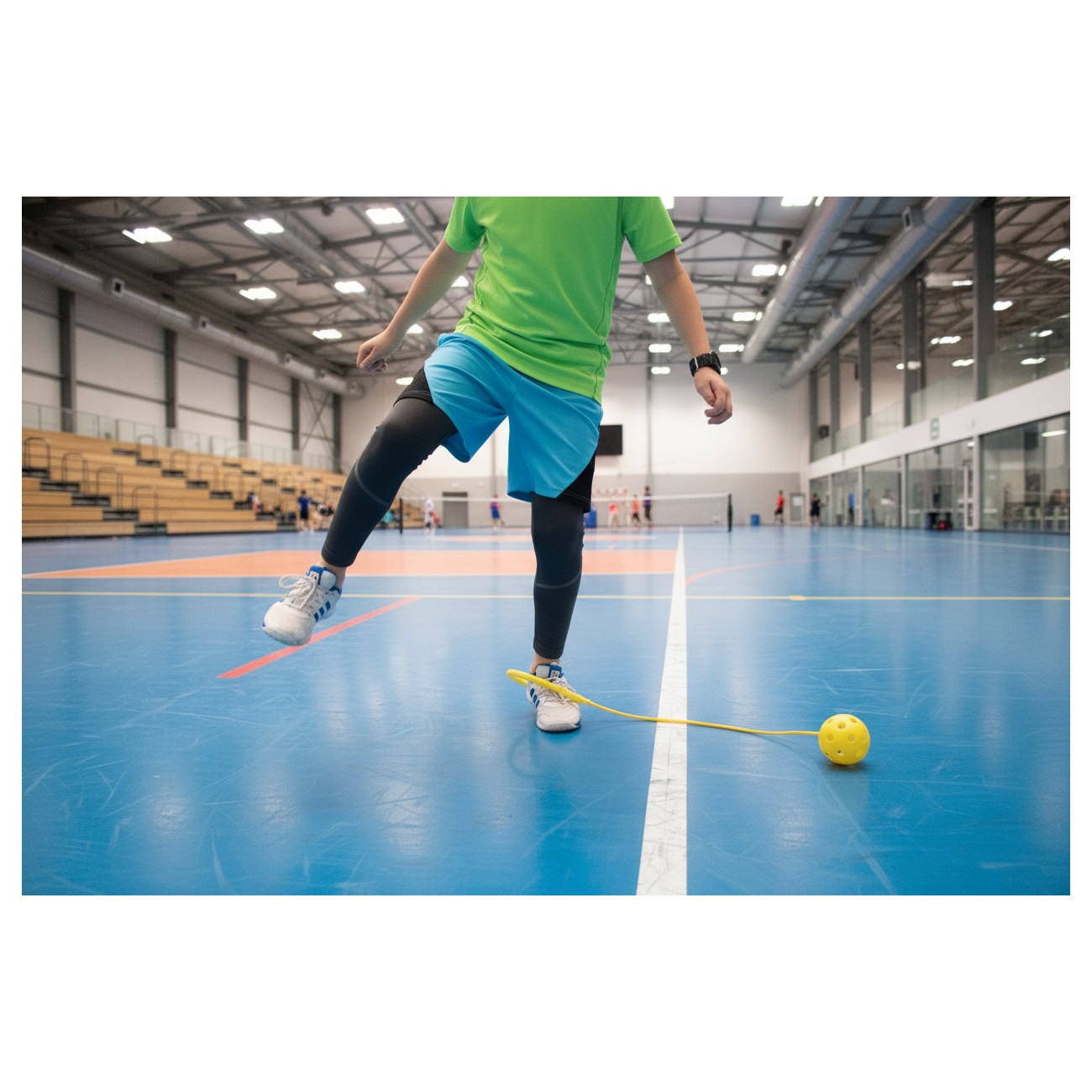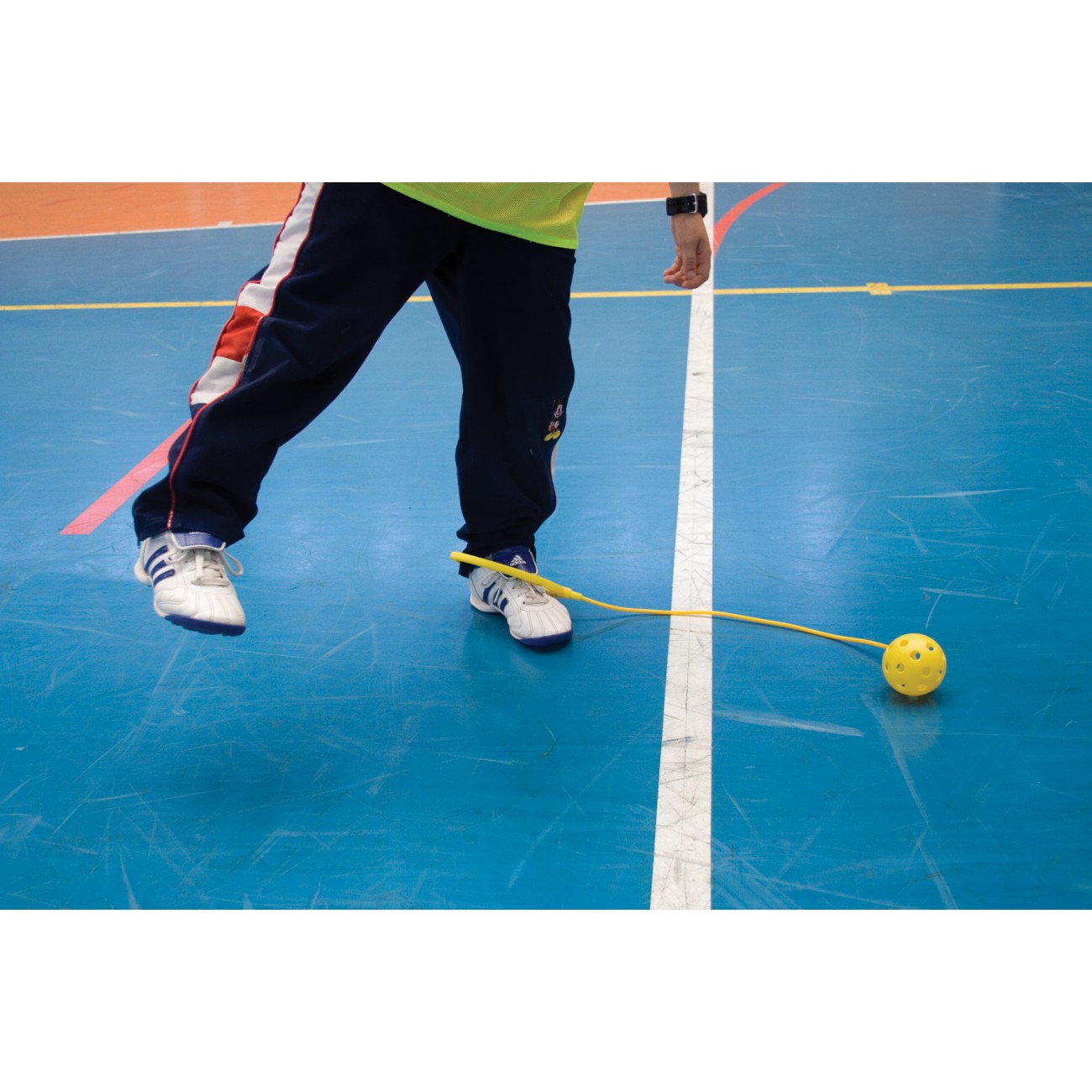 Made of durable PVC with a polyester cord, it is designed as a one-piece ball with holes, ensuring safety and long-lasting use.