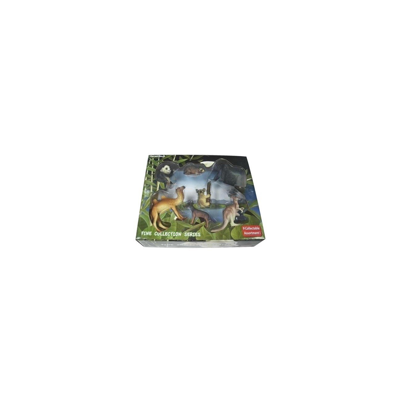 Realistic figures. Made with non-toxic materials and paints in line with European legislation. Kangaroo, panda, camel, gorilla, raccoon, koala bear and coyote.