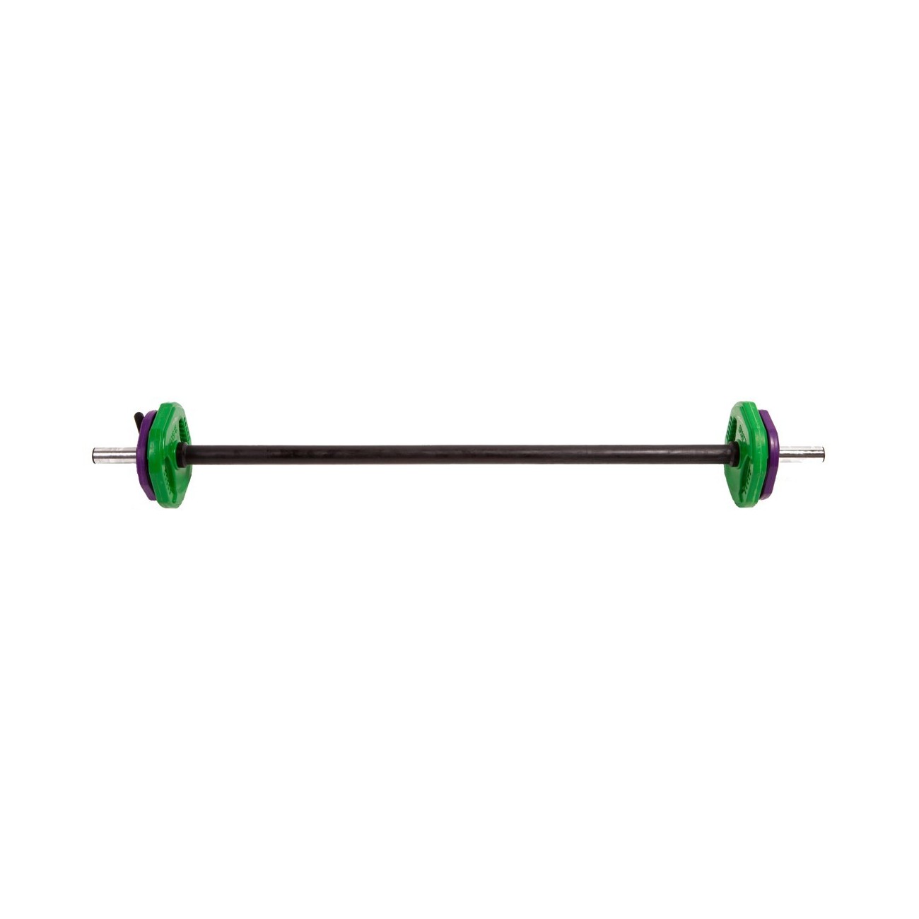 Light Body Pump set with bar and plates included. Complete kit for group training and fitness. 30 mm bar, rubber-coated plates and collars. Ideal for gym and home workouts.