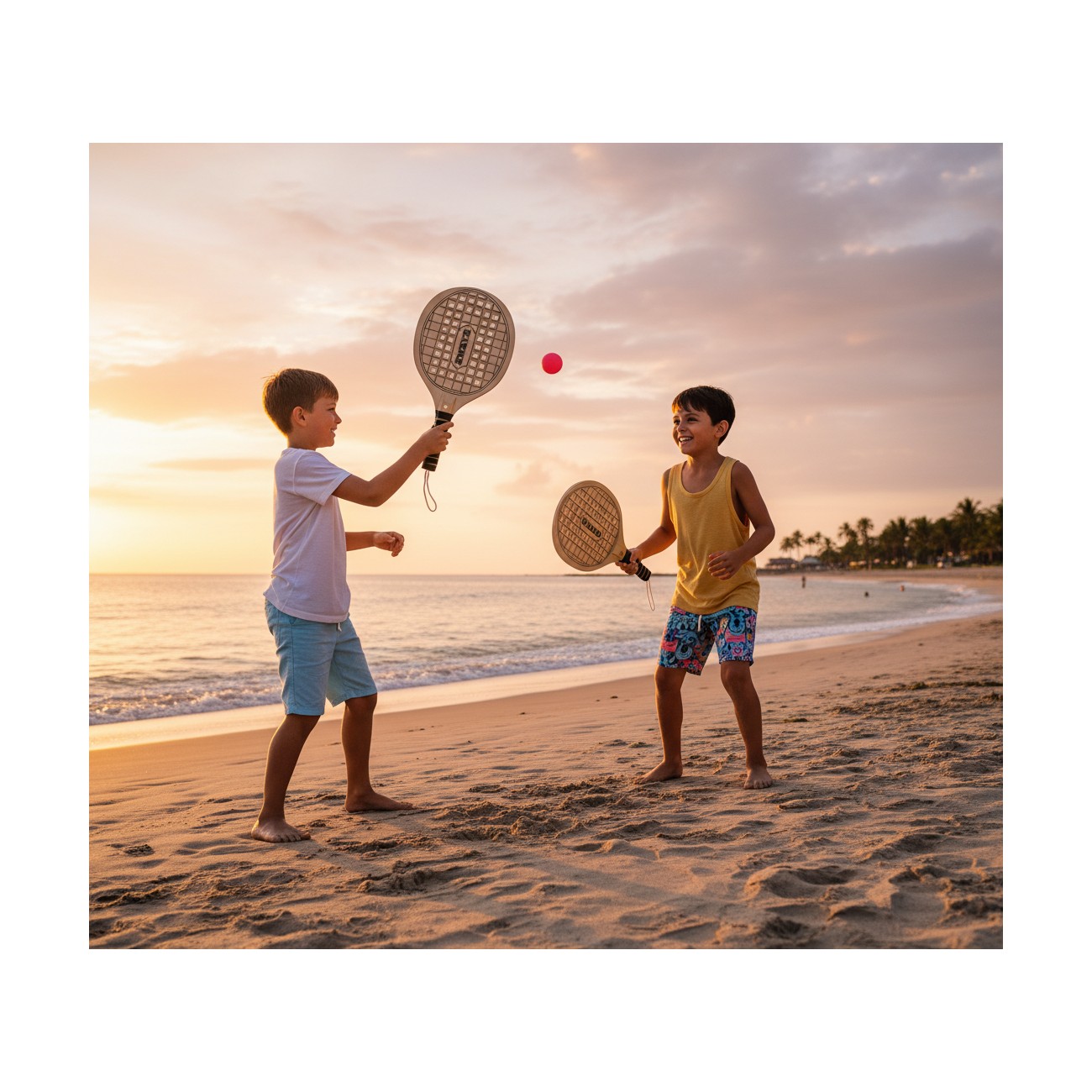 Each game includes 2 solid natural wood rackets and 1 ball, providing durability, control and fun for beach, garden or park play.
