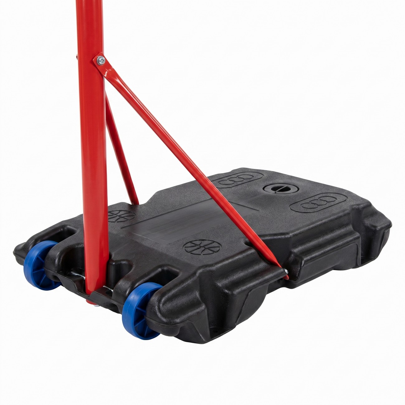 Made with sturdy steel tubing and a reinforced PE base, which can be filled with water or sand up to 60 kg, ensuring maximum stability. Includes an American-style backboard, steel hoop with 42.5 cm diameter, and net for a complete playing experience.