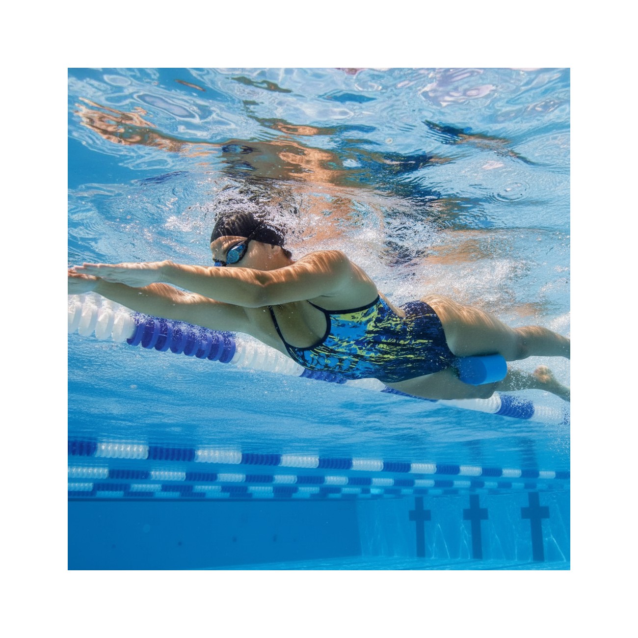 The Pull Buoy is a swimming accessory designed to improve technique and training in the water by isolating upper body work and enhancing body position during swimming.