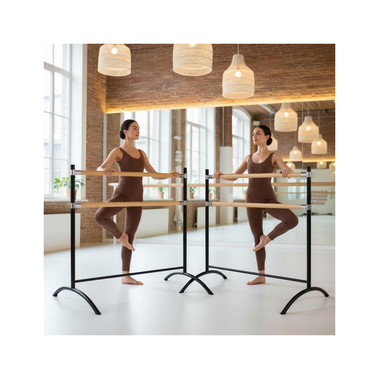 The ballet bar is used to perform bar exercises, versatile strength training, leg massage, feet stretching, etc. It is a simple and portable total body booster. It helps to work