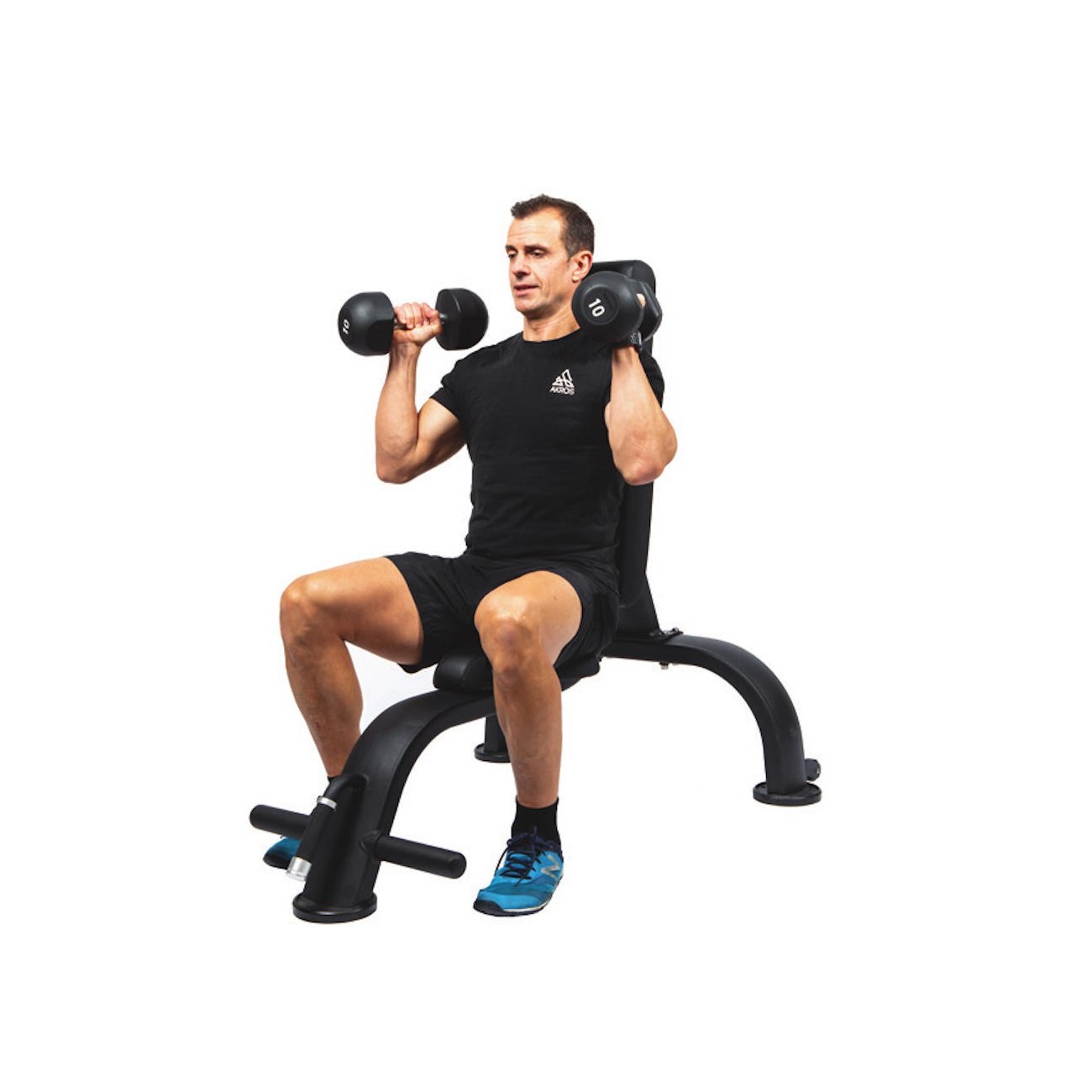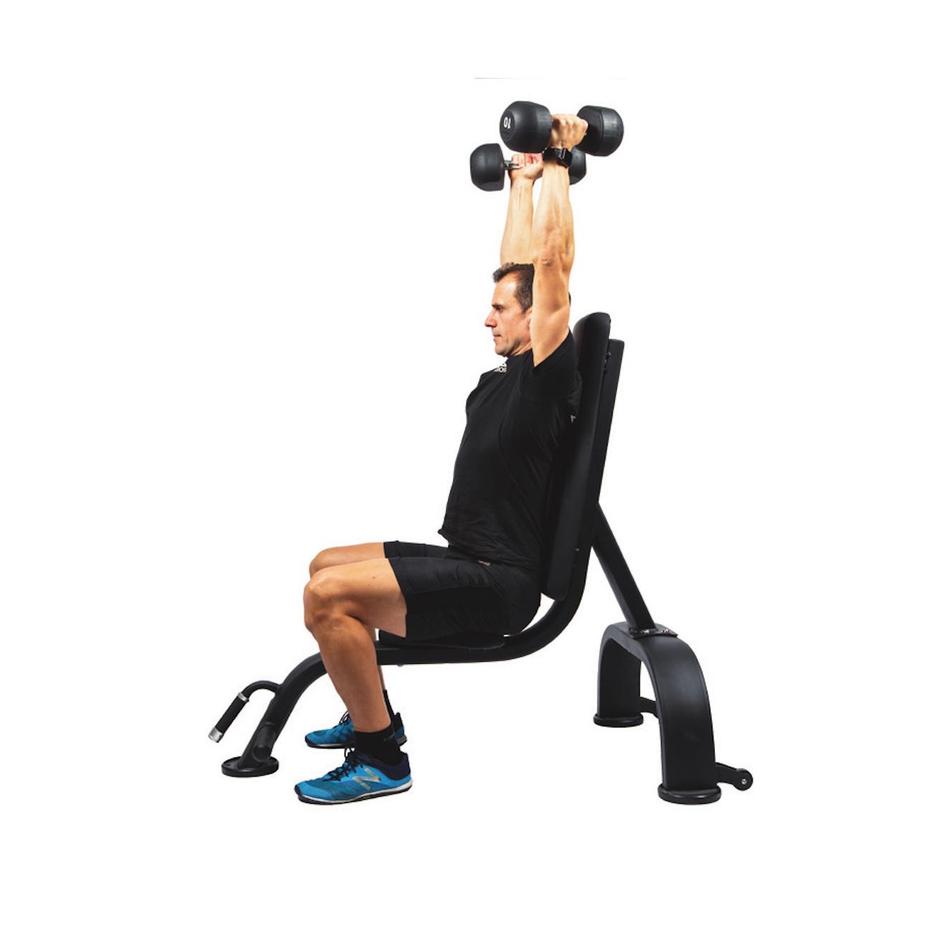 The angle of the back is 85º, which improves the comfort and stability of the upper movements. Integrated foot brackets increase stability