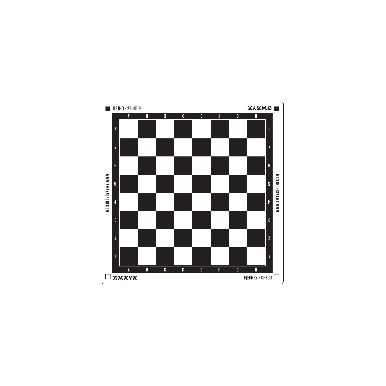 Made of semi-rigid plastic. Board measures: 50 x 50 cm. 5 cm squares.