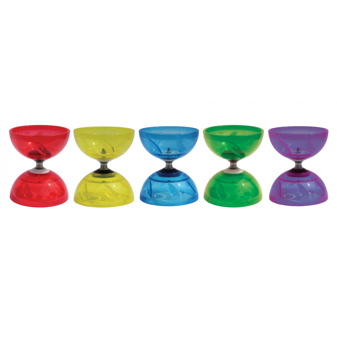 The diabolo is made with heavy-duty transparent cups and an integrated bearing system that facilitates a longer, more stable, and smoother spin, allowing for easier and faster reaction times.