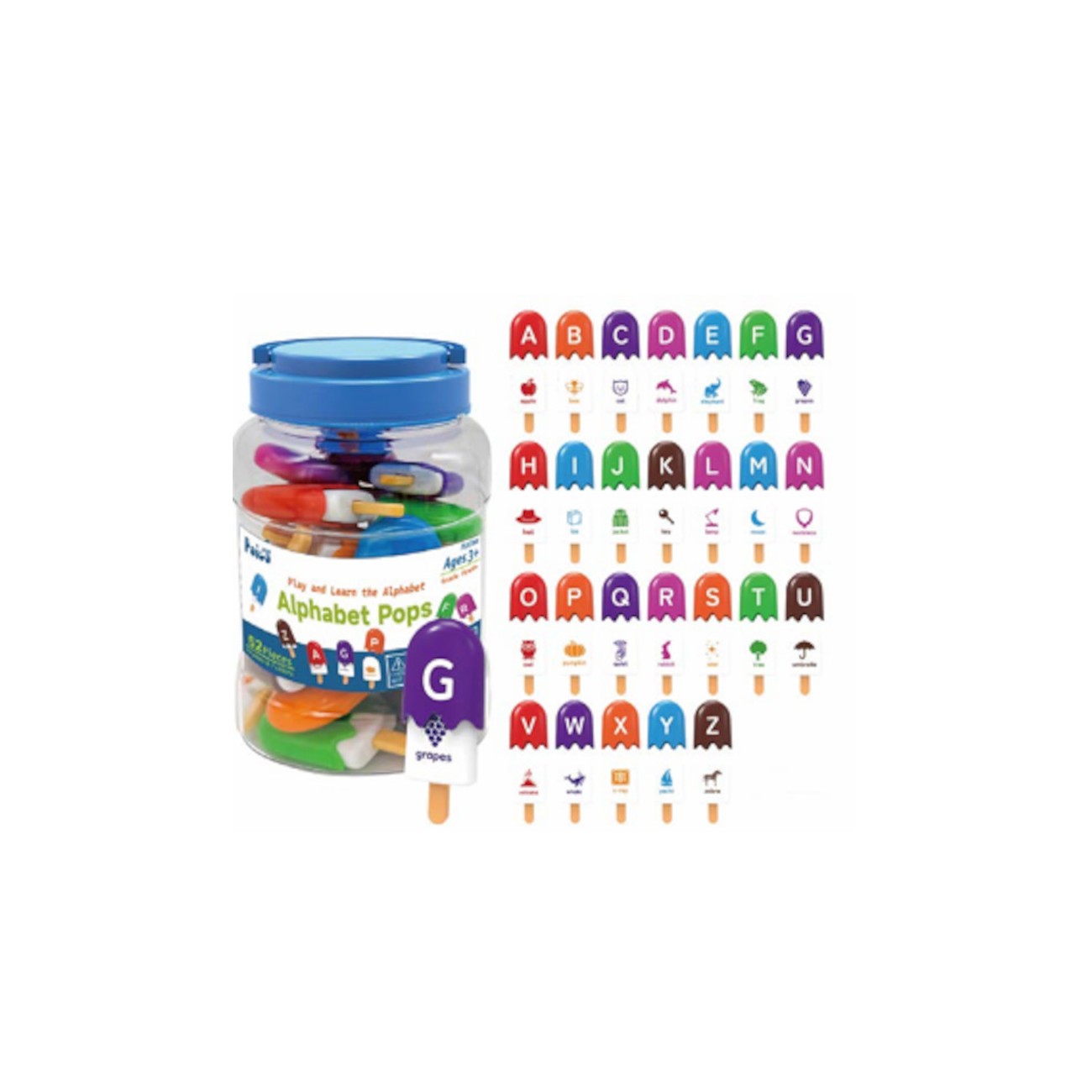 Includes: 26 mini popsicles with alphabet letters.