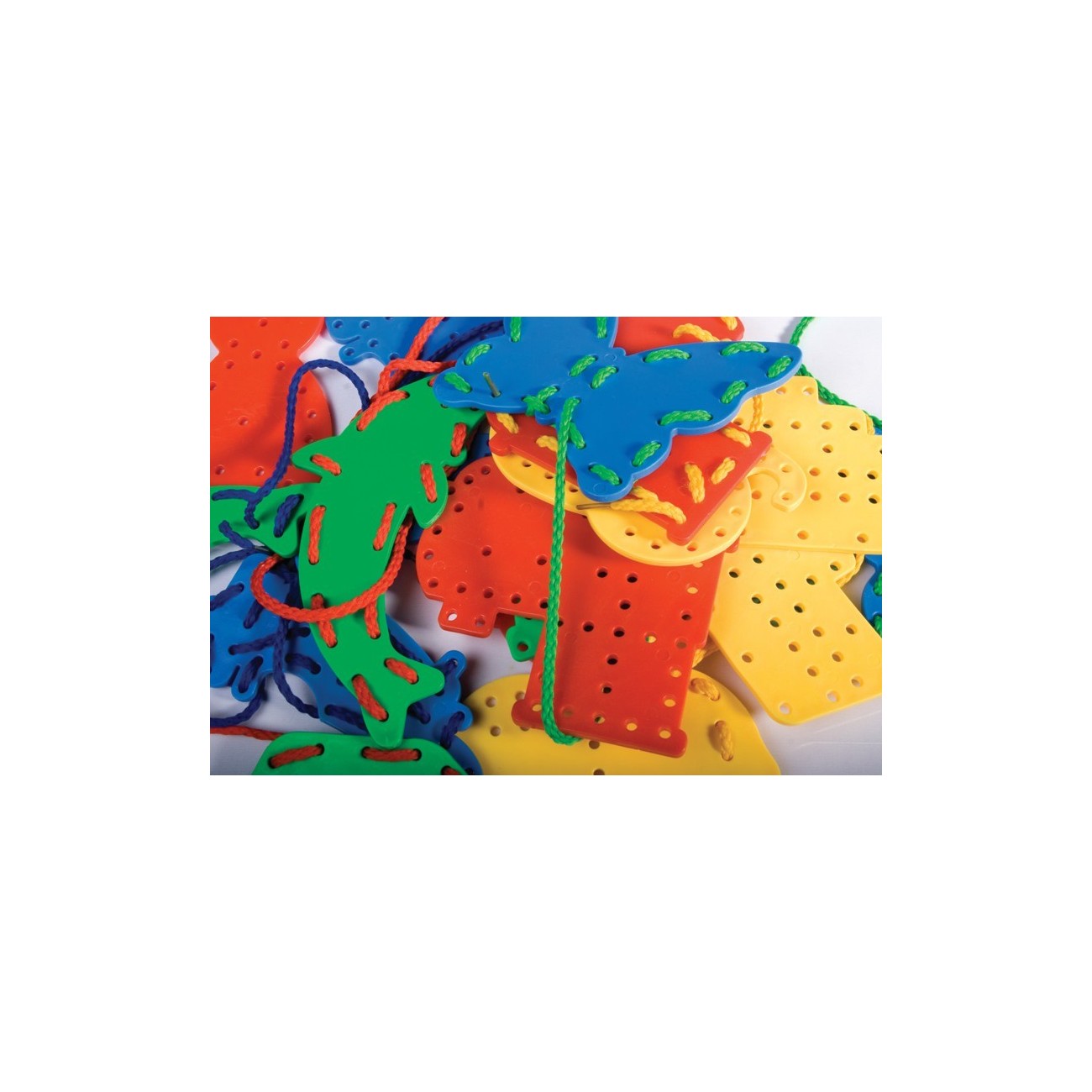 Sewing figures, set of 24 pieces and 8 braided cords in different colors. Recommended age: 3 years and up