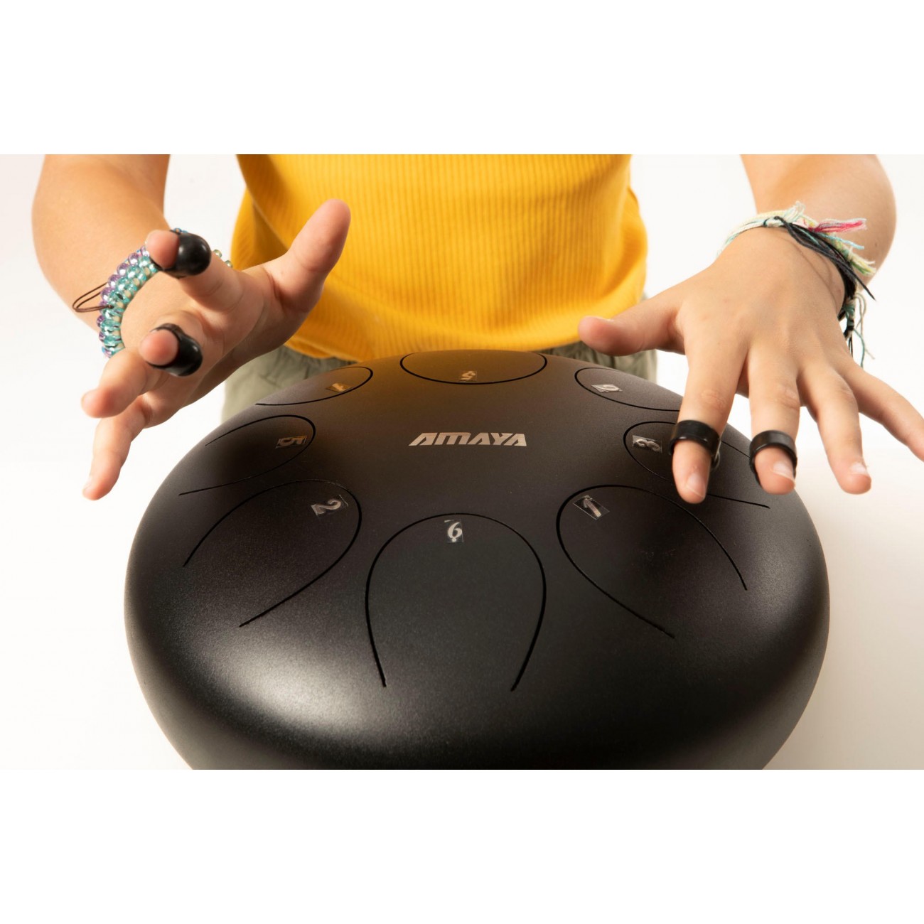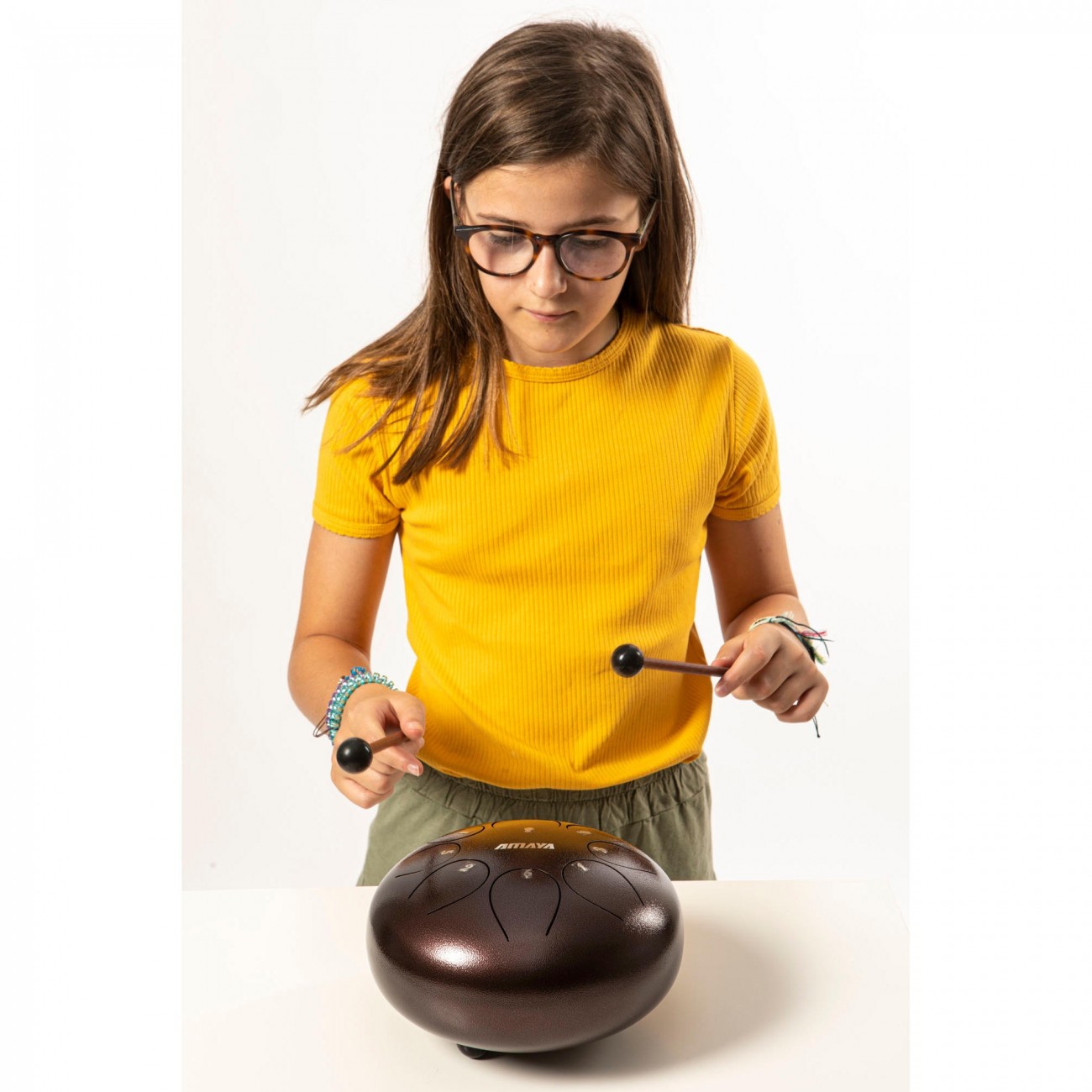 The Tongue drum is a percussion instrument of the idiophone family (instruments that generate sounds through the vibration of the material itself, without the need for strings, membranes or external resonators).