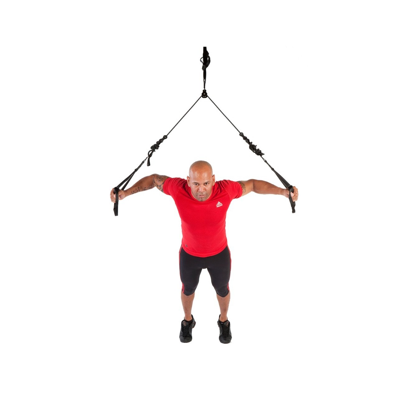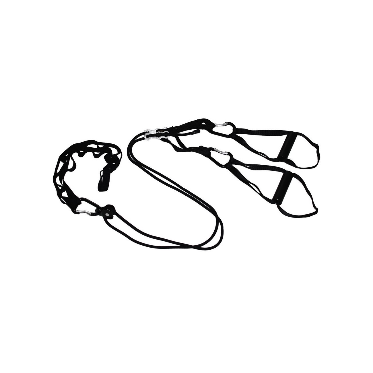 The trainer features high-strength aluminum grips and durable synthetic ropes and straps, ensuring total safety during exercise.