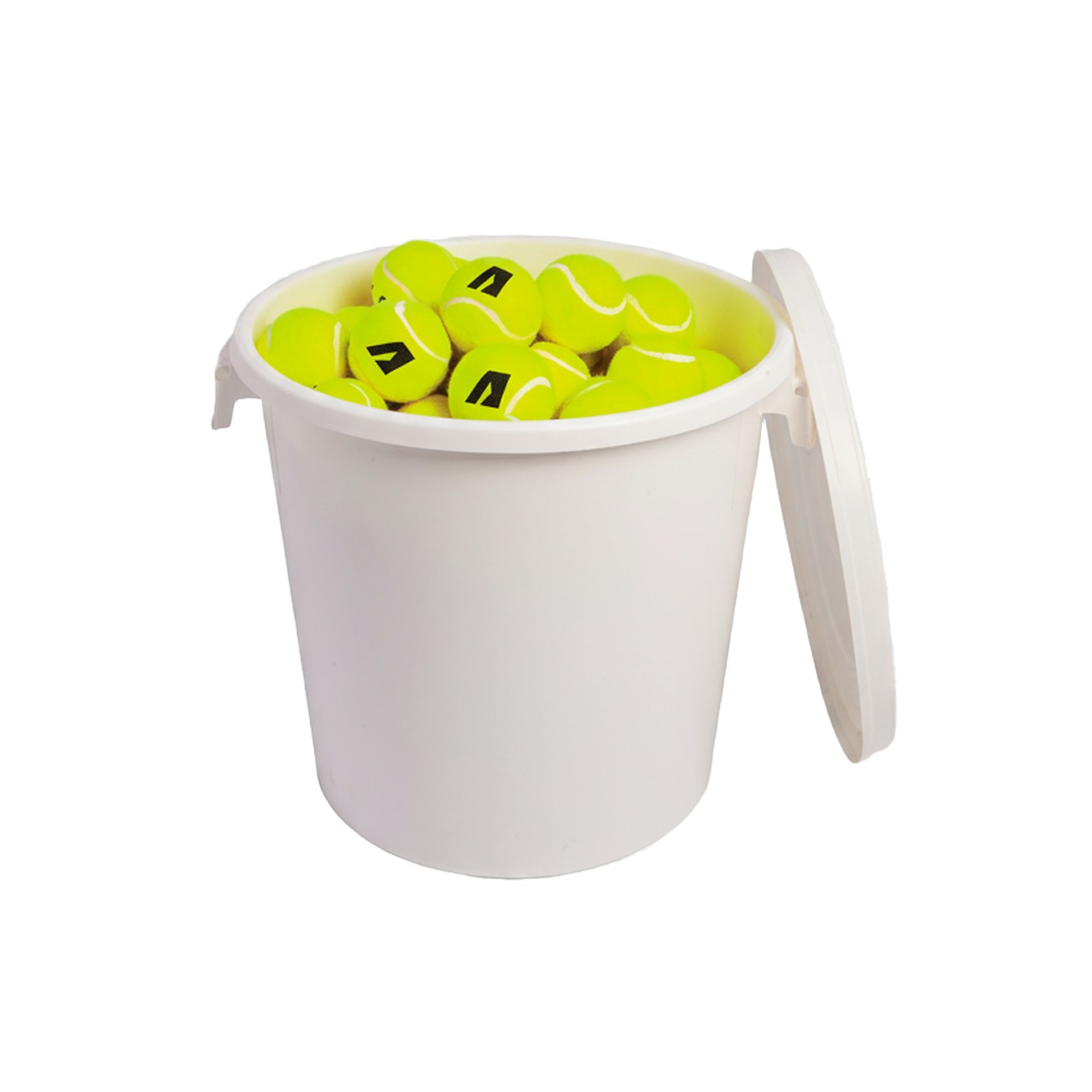 Low pressure tennis balls bucket – 100 units, ideal for training sessions, sports schools, clubs and beginner players. Low pressure balls provide a slower speed and controlled bounce, making them perfect for learning and improving technique.
