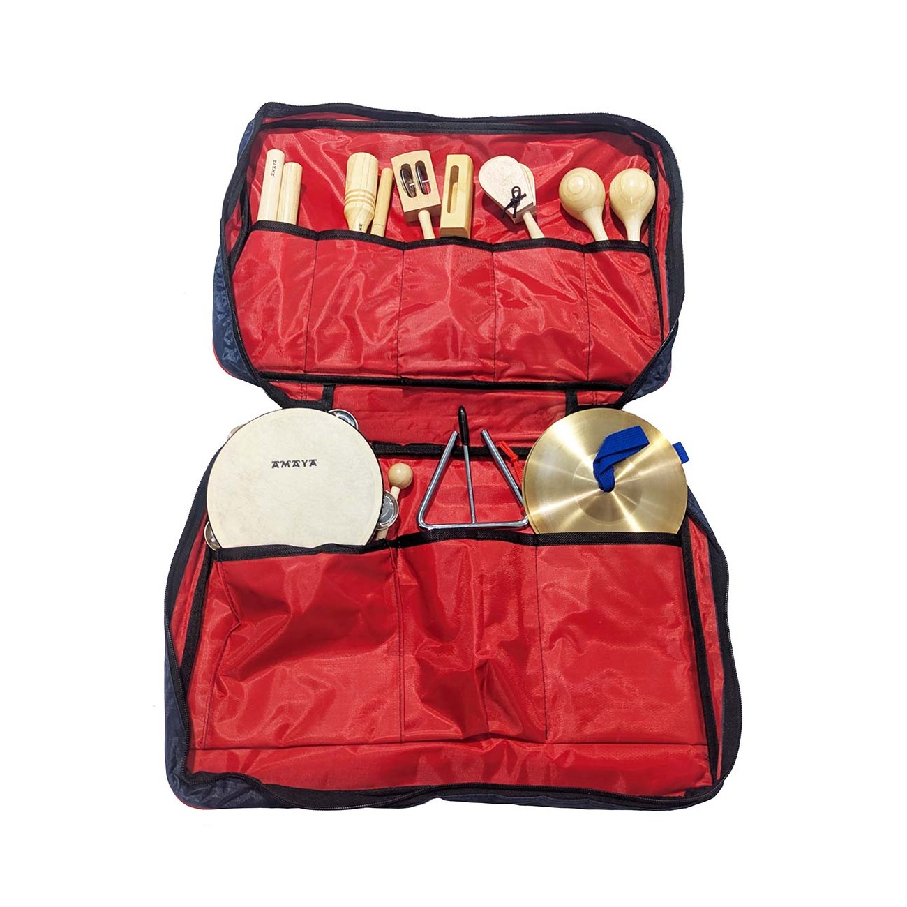 El set de percusión pequeño es una bolsa compuesta por:
